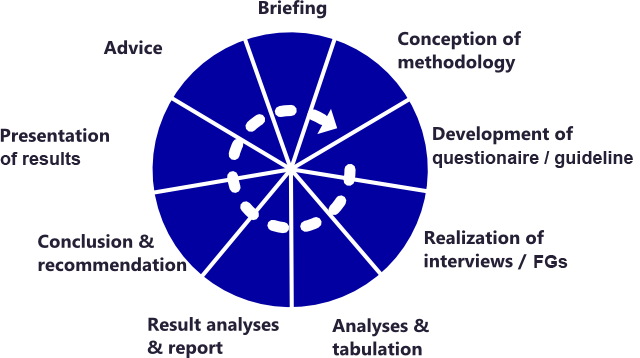 Our work begins not only after the briefing and does not end with the conclusion chart.